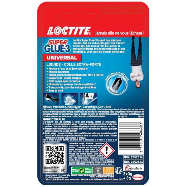 | Conditionnement | Lot de 3 tubes (2 + 1 gratuit) Super Glue-3 Loctite |