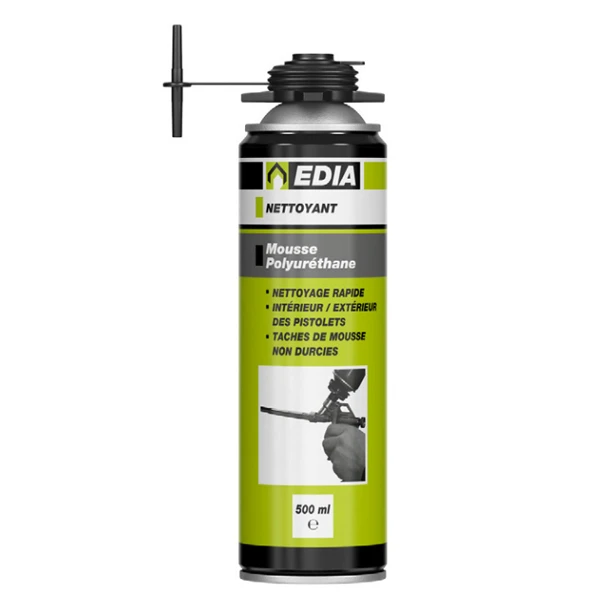 Nettoyant pour mousse polyuréthane PU non durcie sur outils et supports – Edia – Aérosol 500 ml