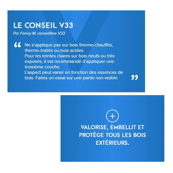 | Conditionnement | 1 pot de lasure haute protection Les intemporelles V33 |
