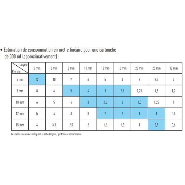 - Pour réduire la consommation de mastic, utilisez un fond de joint adapté à la largeur de la fissure