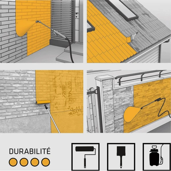 - Convient pour façades, toitures et extérieurs particulièrement exposés aux intempéries