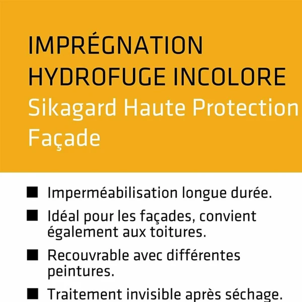 - 1 bidon de 5 litres Sikagard Haute Protection permet de traiter 10 à 25 m² de surface